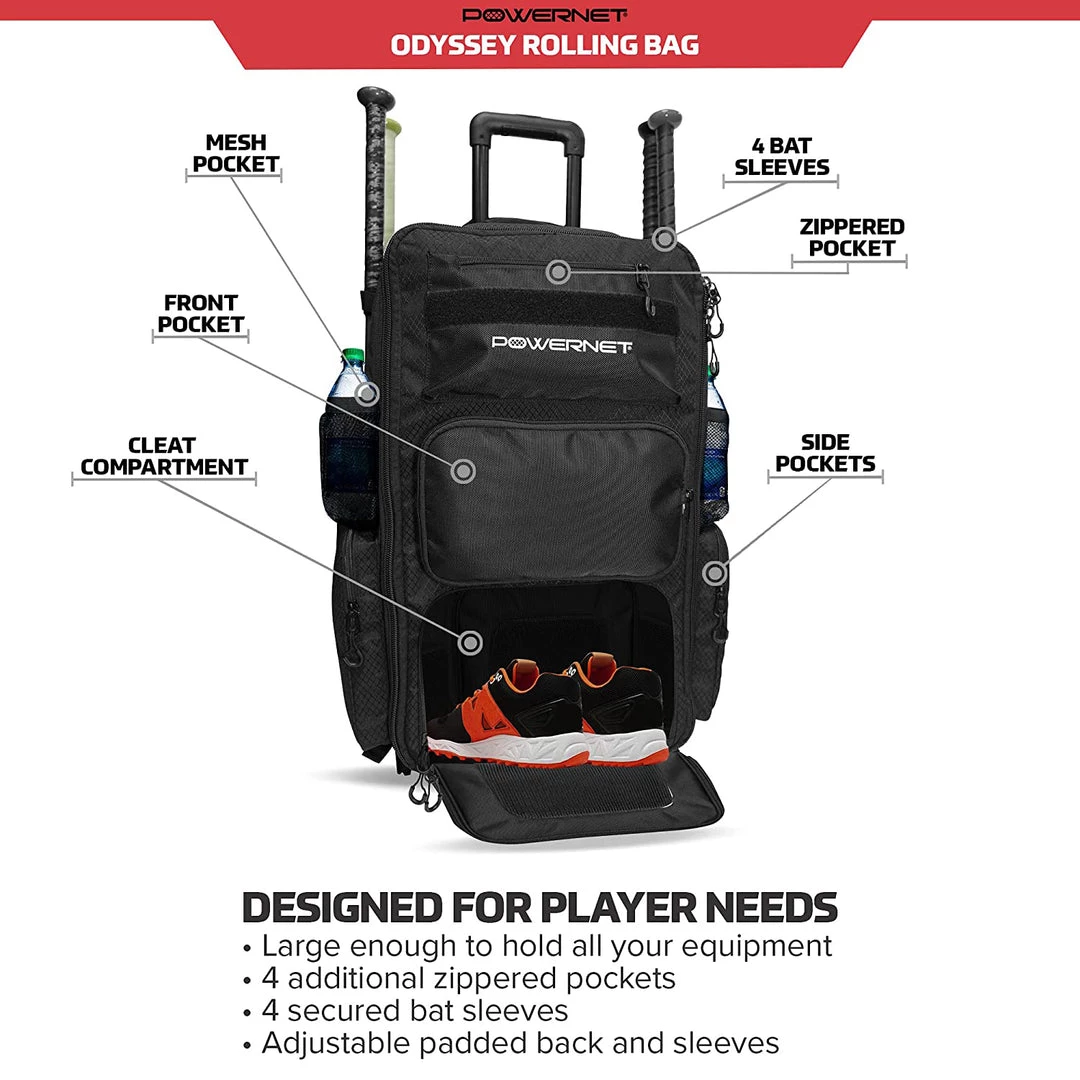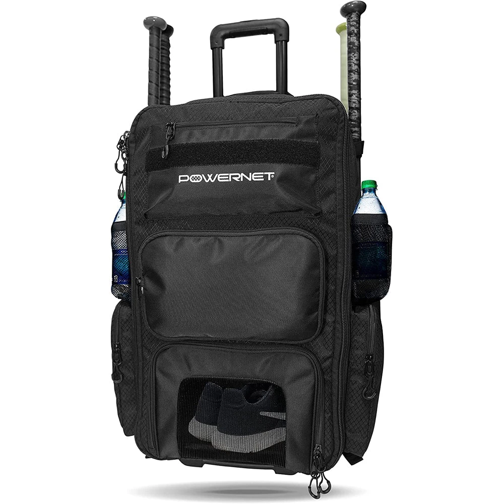 - DURABLE; Reinforced highest stress points of a typical baseball or softball season; Kick plate located on bottom backside of the bag to take the imact of tapping your bag to transition it to use the wheels to roll it; Heavy duty wheels to easily navigate bag
