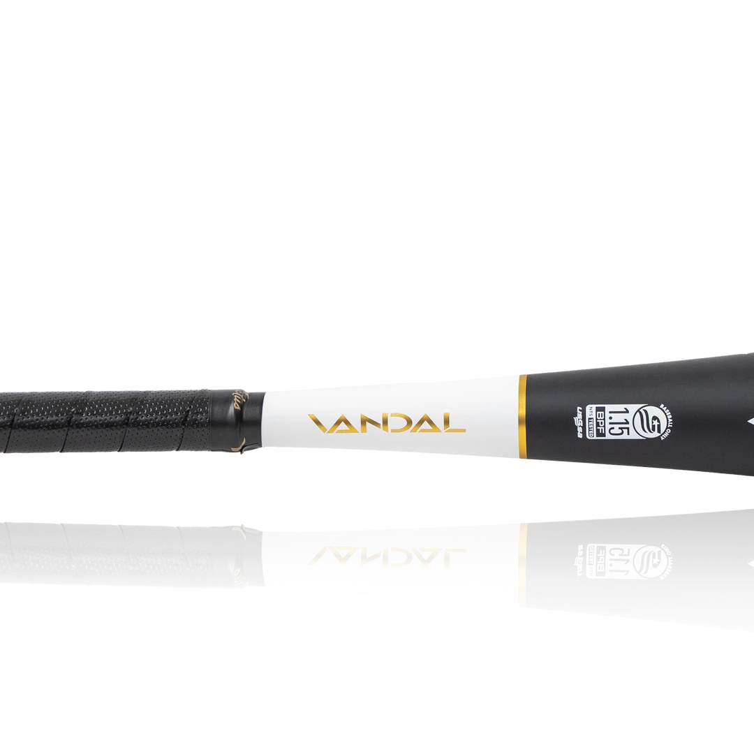 Steal the Show with the Vandal -8 USSSA certified, one-piece aluminum hybrid bat. Engineered with a carbon composite barrel-end creating an ultra-balanced design with low M.O.I. for faster bat speeds through the zone and faster ball exit speeds. The Vandal combines a ringless barrel made of multi-variable wall thickness for a more flexible sweet spot with a micro-perforated soft-touch grip for the unmatched performance you would expect from a Victus bat.