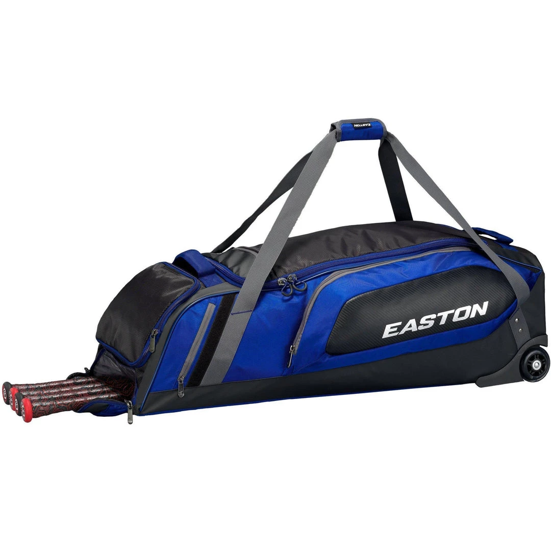 Introducing Easton’s premium equipment wheeled bag, the Matrix Wheeled Bag. With a hard-molded base to provide stability and smooth inline skate wheels, this ultra-durable bag is perfect for daily trips to and from the diamond. Featuring a padded, lockable bat compartment that can store up to 5 bats, YKK zippers throughout the main compartments and an oversized large-mouth main compartment opening is perfect for easy gear access. Finished off with two felt-lined pockets to protect valuables and mesh ventilation throughout the bag. Roll up to any game or practice through any terrain with the Matrix Wheeled bag.