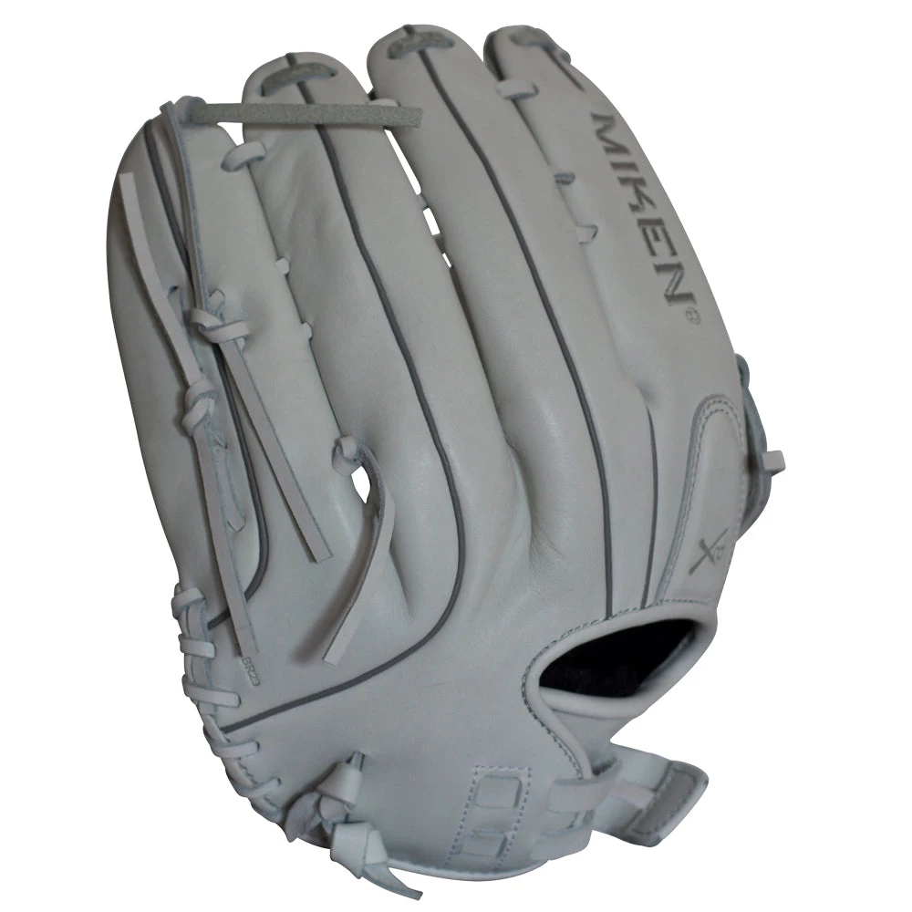 Miken Pro Series 15″ slow pitch softball glove features the Pro H Web pattern, which is an extremely strong web that provides ball snagging functionality. This softball glove has a lightweight, soft, full-grain leather shell for a game-ready feel. Additionally, the PORON XRD palm padding has been added to drastically reduce ball impact to your hand.