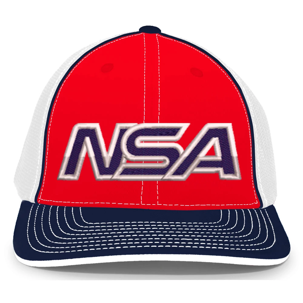 Pacific Headwear Baseball NSA Outline Series Red/Navy Flex Fit Hat: 404M-RDWHNV