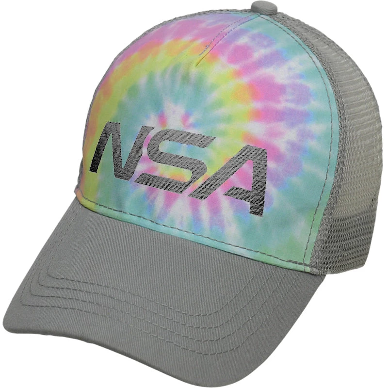 Represent the National Softball Association with this Neon Rainbow & Black Tie Dye Snapback with a flat NSA Logo.