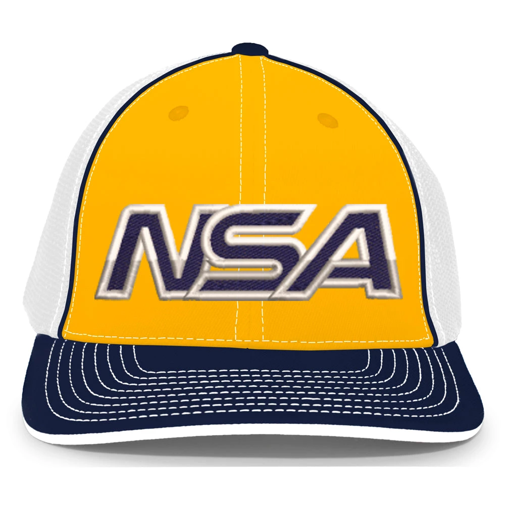 Represent the National Softball Association with this Pacific Headwear Trucker Flexfit Cap with a 3D Outline Logo.