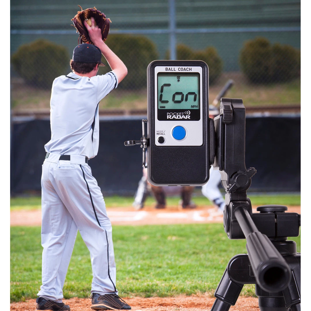 Specifically designed to measure the fastest speed of a ball in flight. The Ball Coach Radar™ is a pro-level radar gun and speed training tool for smart player development through one-on-one coaching or self-guided drills, and hands-free operation keeps it simple. By making crucial results like hitting power, pitching speeds, throwing speeds, serving speeds and shot speeds instantly visible, the Ball Coach radar is the smart and easy way to get better faster. Measures from 25 mph to 130 mph and is accurate to within +/- 1 mph (+/- 2 kph), has 120 feet of range on a baseball and 25 deep memory.