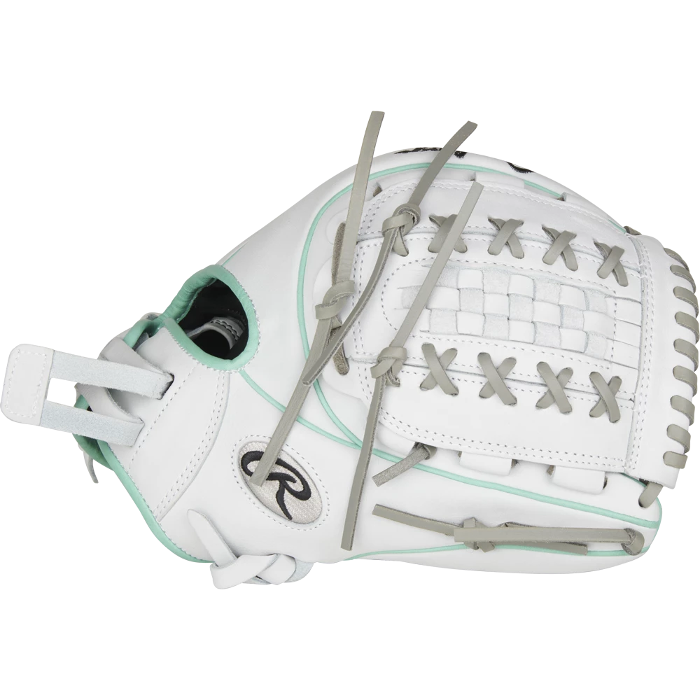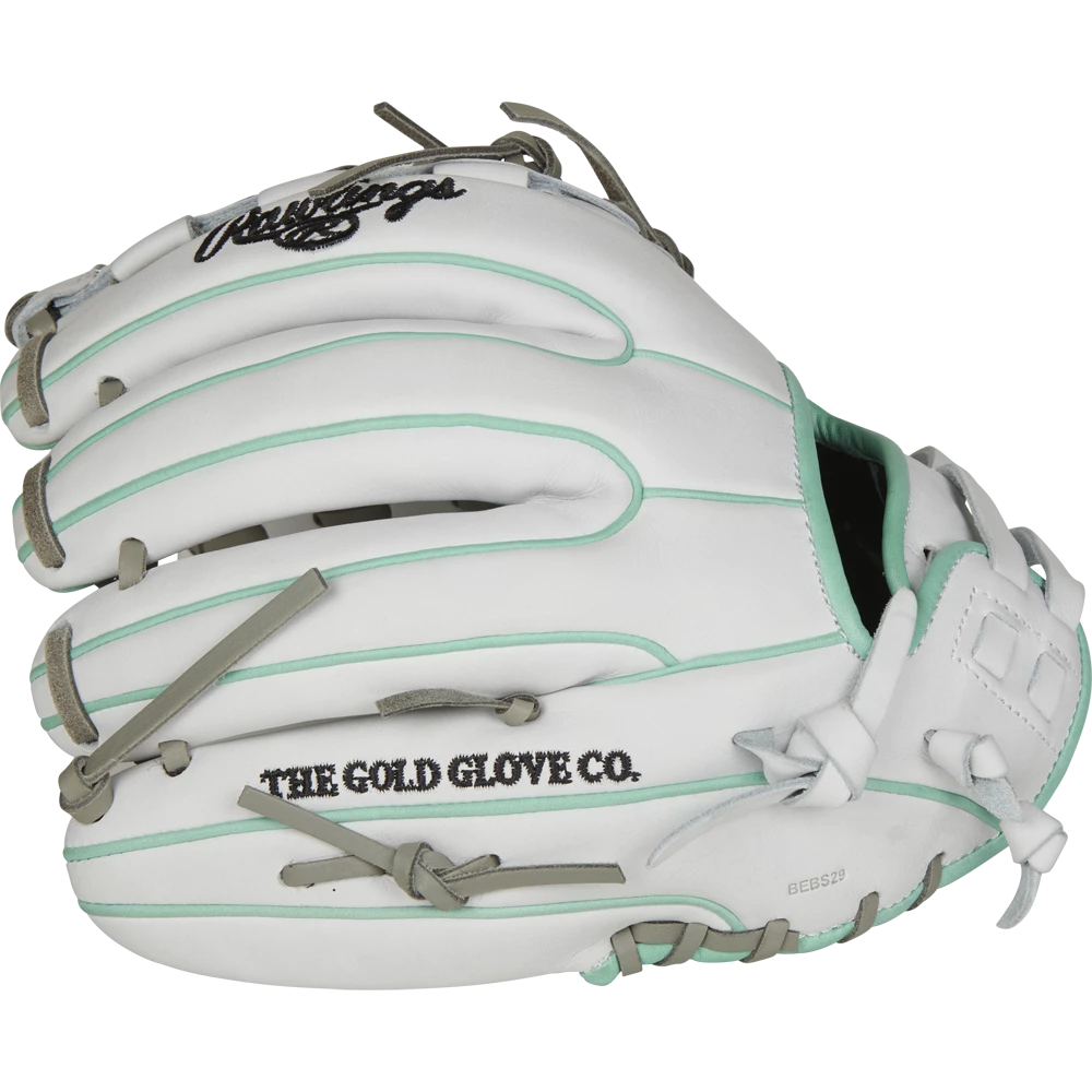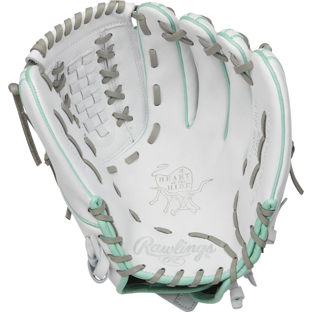 The 2021 Heart of the Hide 12-inch softball glove was artfully crafted using our 71-pattern. This popular softball pattern was designed specifically for the fastpitch player, to provide a better fit and feel – and deeper pocket. It’s crafted from our legendary HOH leather that’s world-renowned for its durability and performance. This white glove has the perfect touch of color, with beautiful ocean mint binding and welting. This blissfully compliments the basket connector web and gray lacing, to give you a subtle style all your own.