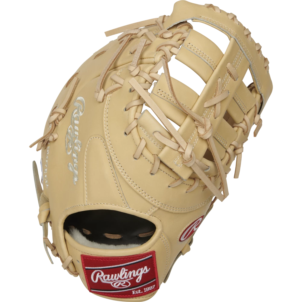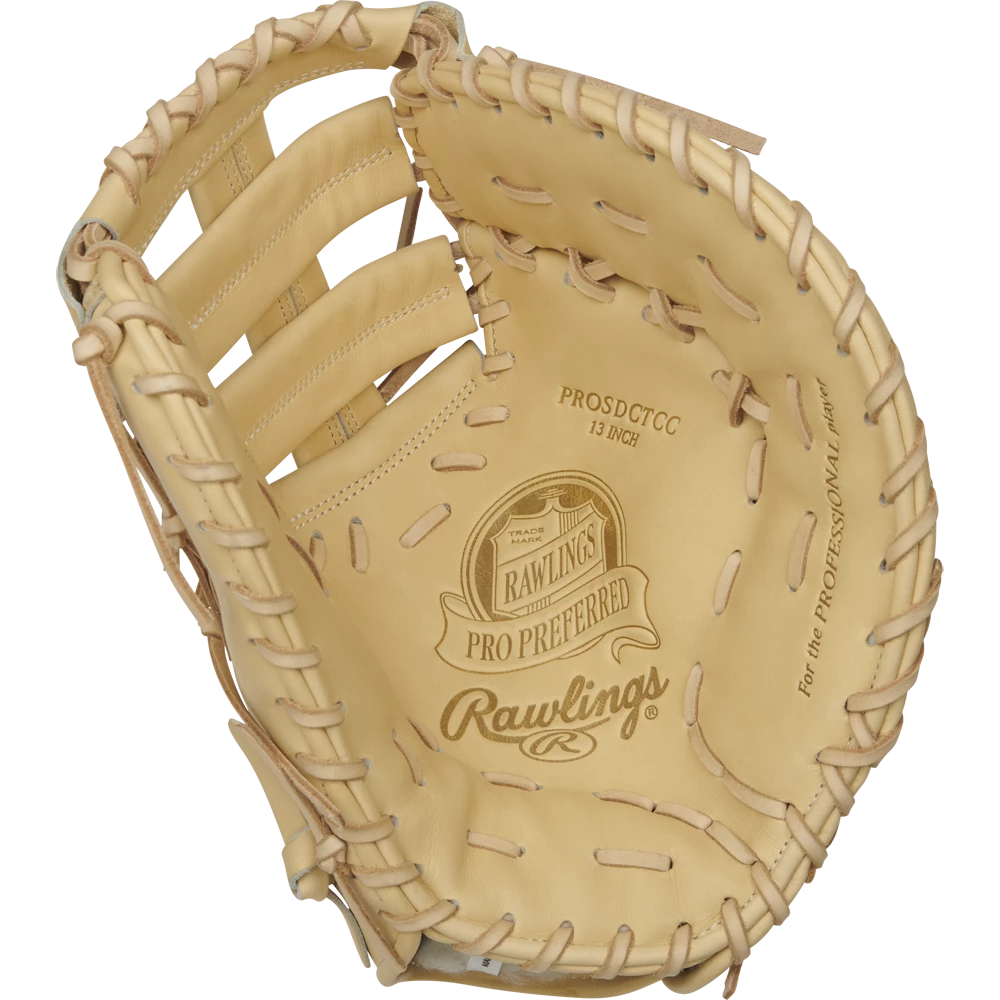 The 2021 Pro Preferred 13-inch first base mitt was crafted from flawless, full-grain kip leather. This luxurious leather is known for its supple look, and unparalleled quality and feel. This first base glove was designed for elite first basemen who want to take their game to the next level. Our DCT pattern offers a huge, deep pocket making it a popular choice for many of the best who to play the position. Its camel design also offers a clean, classic look preferred by some of today’s top pros and many elite youth players as well.