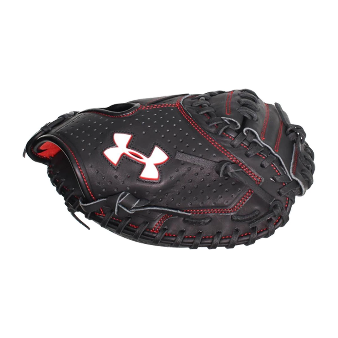 If you’re an avid glove spotter, you may have first seen the UACM-PRO1 on the hand of Brian McCann, but now this pro-quality catchers mitt is available to you! The Pro Series is constructed from premium Wagyu Steerhide leather. Wagyu is renowned for its soft-to-the-touch feel and firm structure which leaves you with one of the most durable catchers mitt designs on the market. Each Under Armour catchers mitt features a very wide, deep pocket that creates the perfect target for pitchers and improves the catcher’s ability to receive the ball efficiently. With such a deep pocket, some may have concerns about securing the ball on close plays at the plate, but the thicker heel and toe padding that the Pro Series offers ensures that the baseball stays securely in the mitt. These mitts are also insanely durable. Inside, PTH Padding runs the length of the palm to prevent sting and also improves the longevity of the leather where it experiences the most wear and tear. And with a vertically laced web and pocket, the chances of a snapped lace or worn web is greatly reduced.