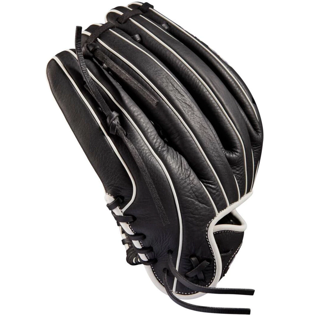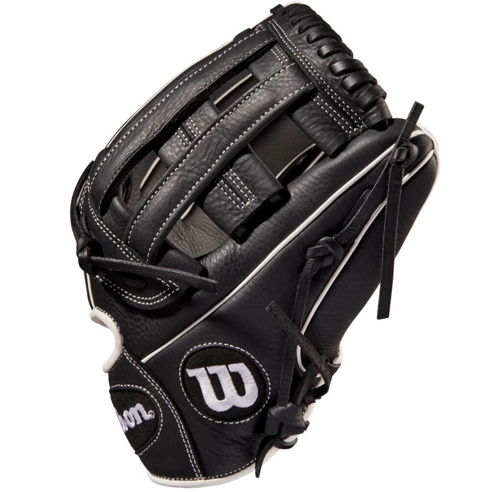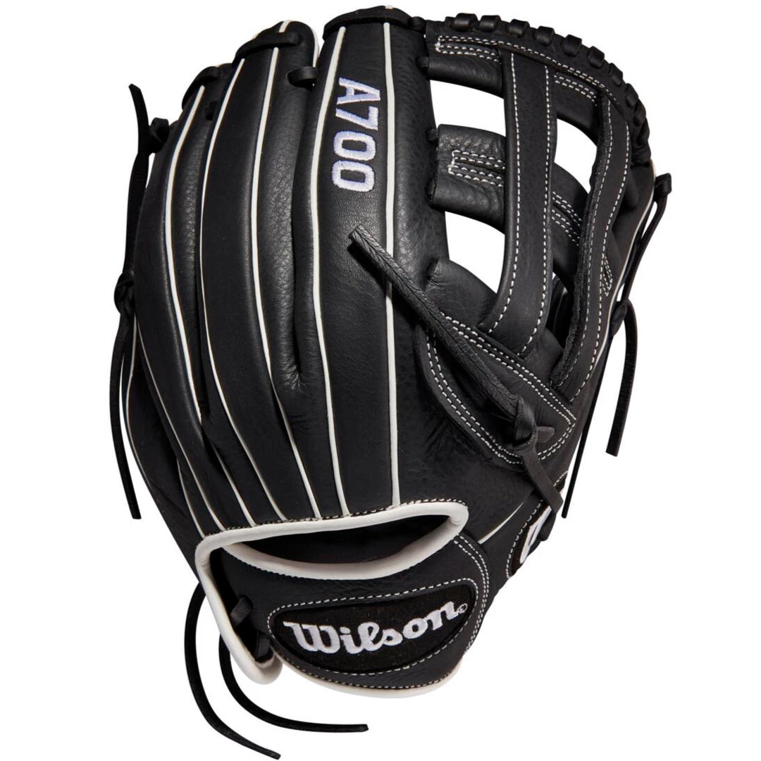 Hone your skills all over the diamond with the sturdy Dual Post Web of the A700® 12” Fastpitch Infield Glove. Black and White Full Grain leather is game ready on day one
